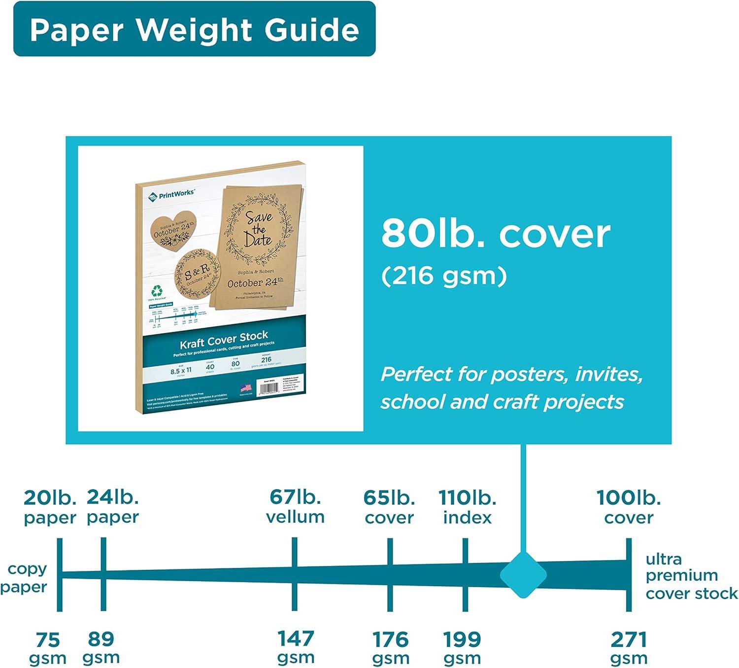 Print Works Kraft Cover Stock, Heavyweight, Solid Core, 8.5” x 11”, 40 Sheets (00691)