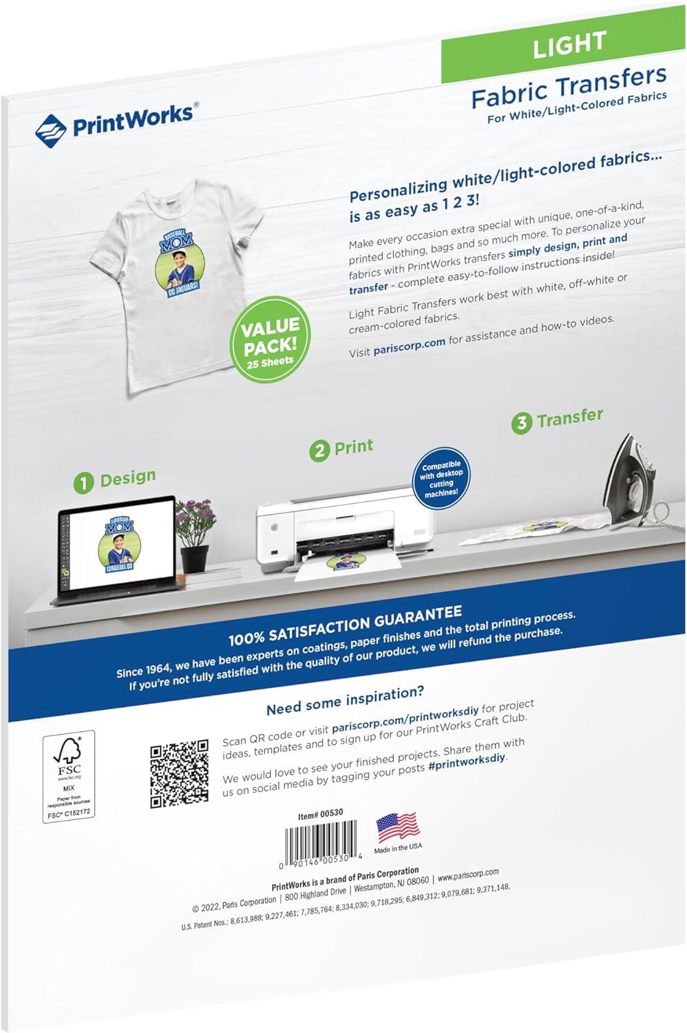 PrintWorks Iron on Heat Transfer Paper for Inkjet Printer – Printable Heat Transfer Vinyl for Light Fabric (Printable HTV) – 8.5″ x 11″ – 10 Sheets – Made in The USA – Iron on Vinyl (00636-6A)(300 Sheets)
