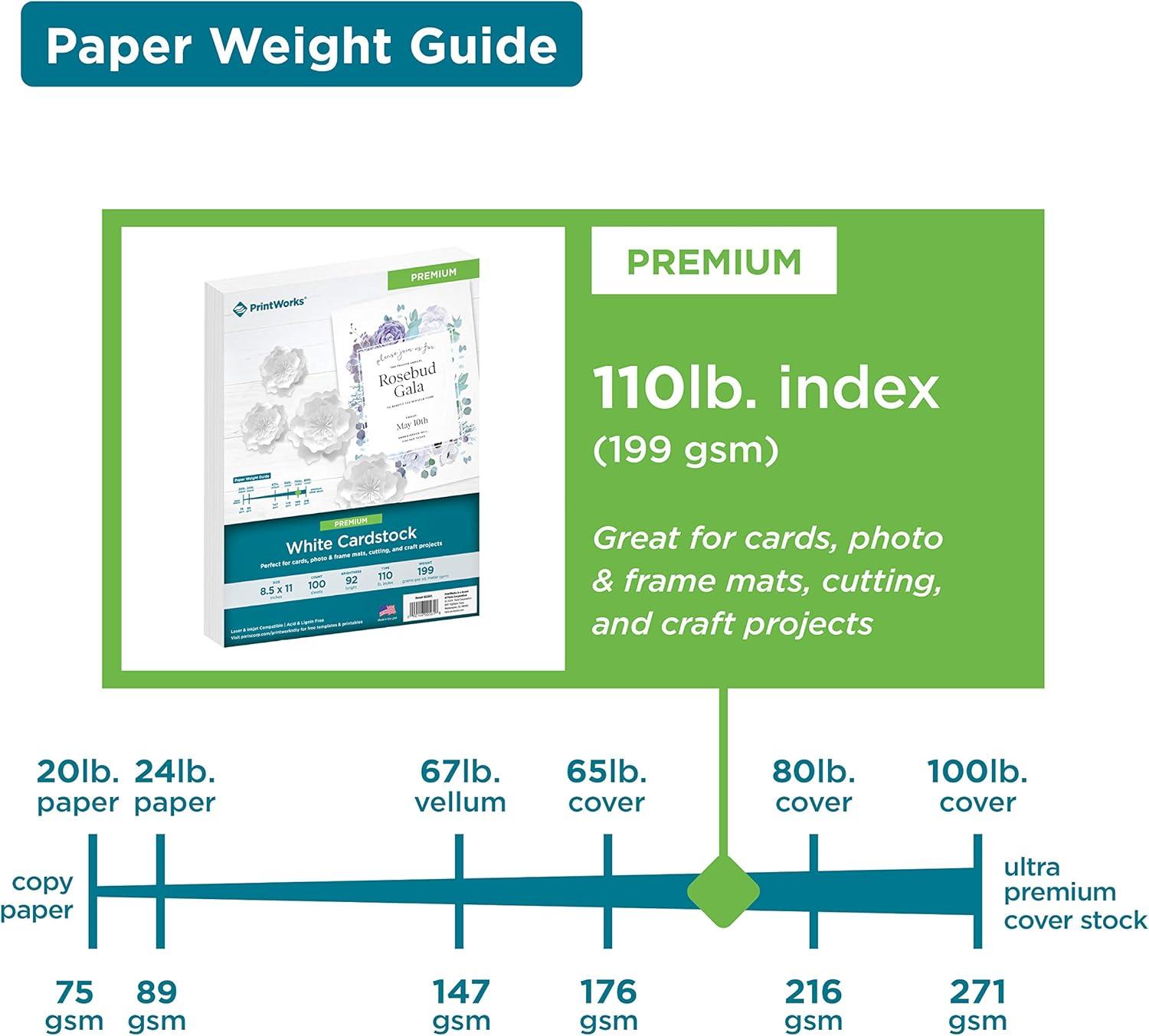 PrintWorks White Cardstock, Premium, 110 lb. Index, Ultra-Smooth, 92 Bright, 250 sheets, 8.5 x 11, For Office, Home & School Printing, Craft Projects (00562)(250 Sheets)