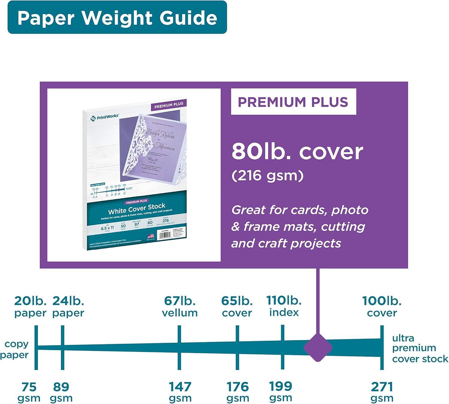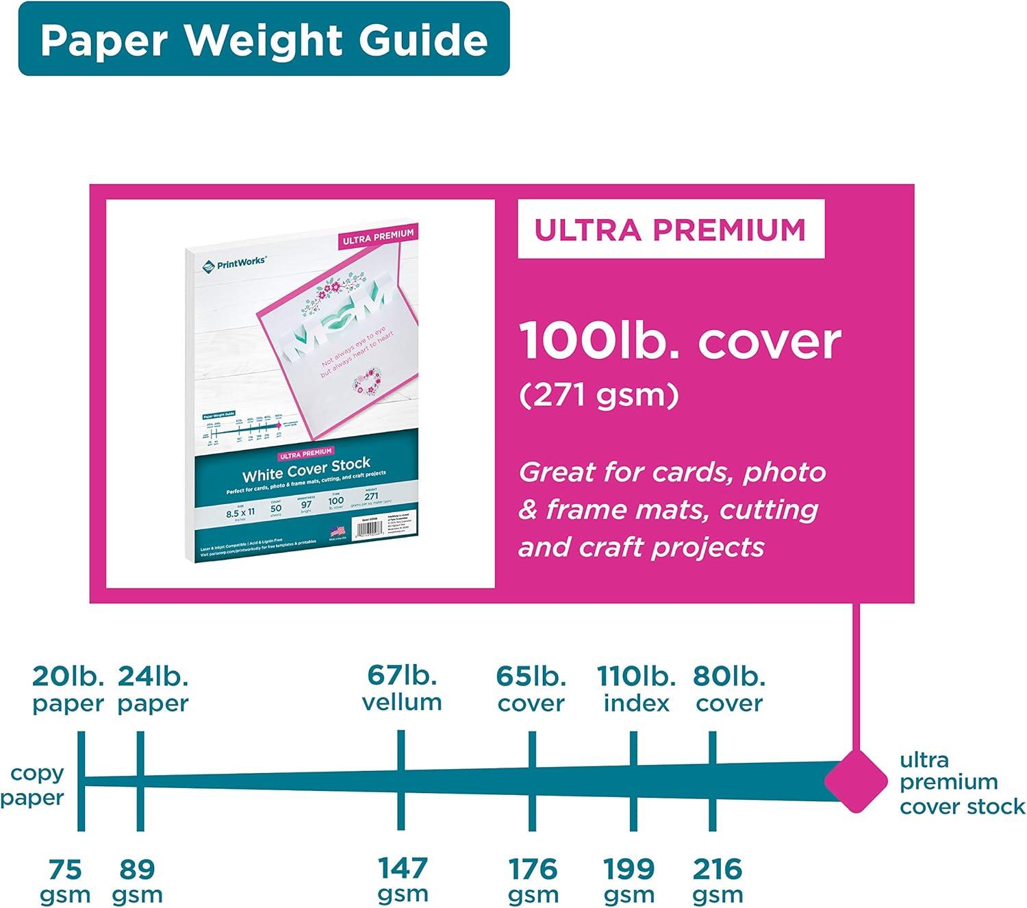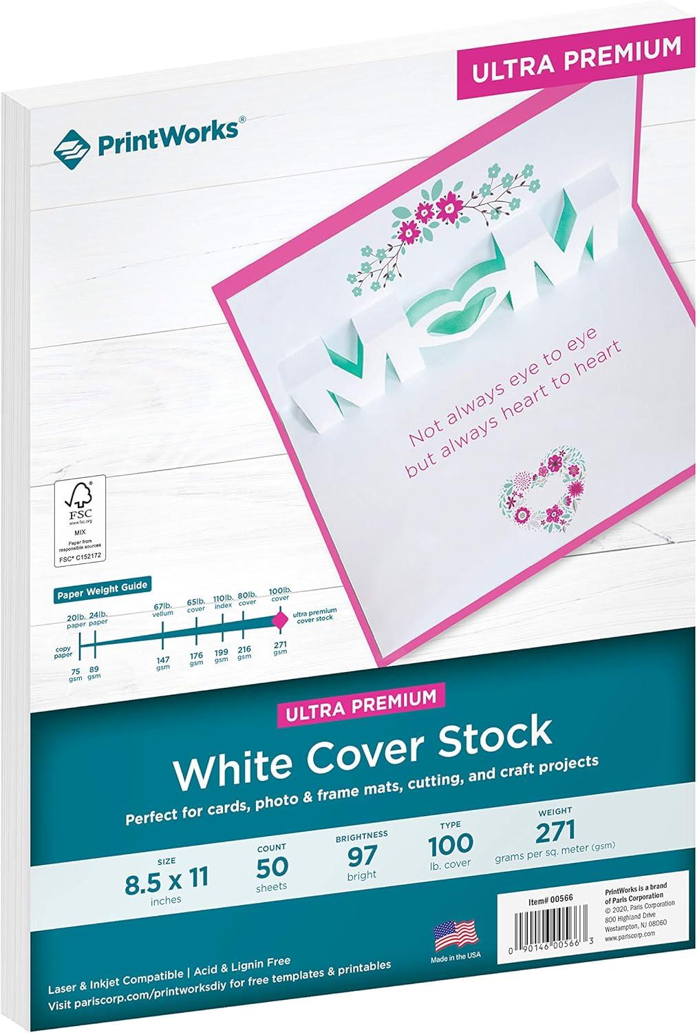 PrintWorks White Cardstock, Premium, 110 lb. Index, Ultra-Smooth, 92 Bright, 250 sheets, 8.5 x 11, For Office, Home & School Printing, Craft Projects (00562)(50 Sheets)